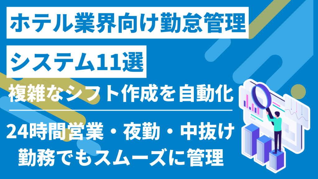 【メタディスクリプション】 ホテル・宿泊業界向けの勤怠管理システム11選を比較します。24時間営業や複雑なシフト管理に対応できる製品の特徴、導入メリットや注意点までわかりやすく解説します。ホテルの勤怠管理に課題を感じている方はぜひ参考にしてください。 -