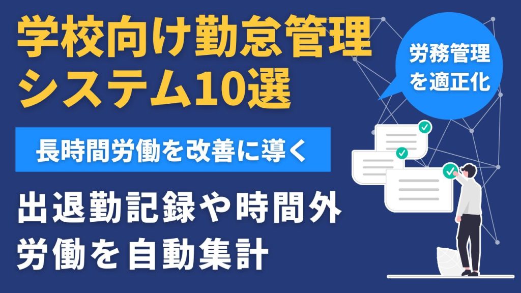 本記事では、学校向けの勤怠管理システム10選を紹介します。教育現場特有の勤怠管理課題や、導入メリット、システム選定のポイントも解説します。学校に最適なシステム選びの参考にしてください。 -