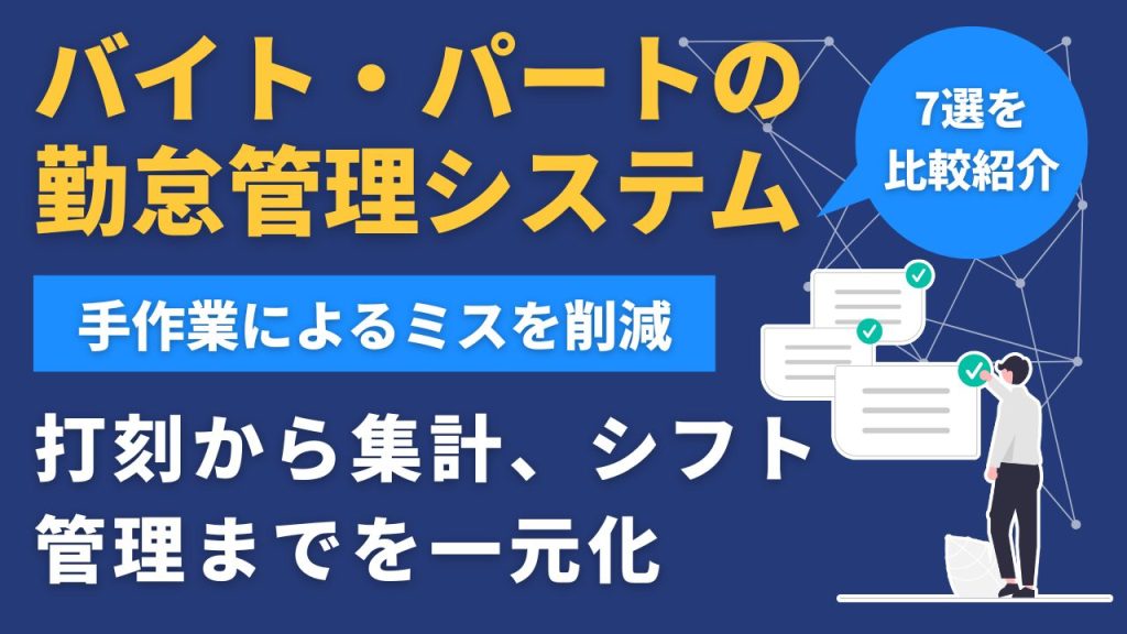アルバイト・パート(バイト)の勤怠管理におすすめのシステム7選を比較紹介します。料金や機能、シフト管理の有無を整理し、業務効率化につながるサービスを厳選しました。よくある課題や選び方のポイントも分かりやすく解説します。 -