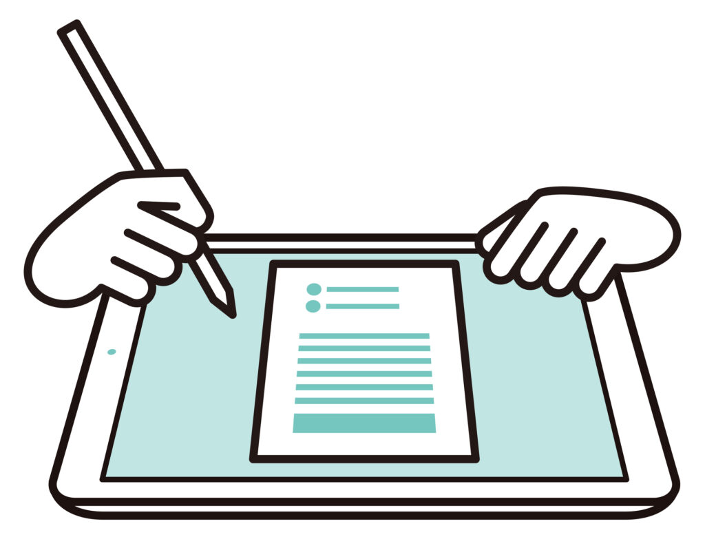 電子サインとは、書類にサインする代わりに、パソコンやスマートフォンを使って本人であることを証明する方法です。