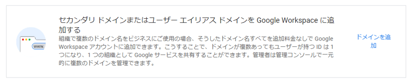 メインで使用するドメインのことを「プライマリドメイン」、それ以外は「セカンダリドメイン」と呼び、ここではセカンダリドメインをGoogle Workspaceに追加する方法を解説します。