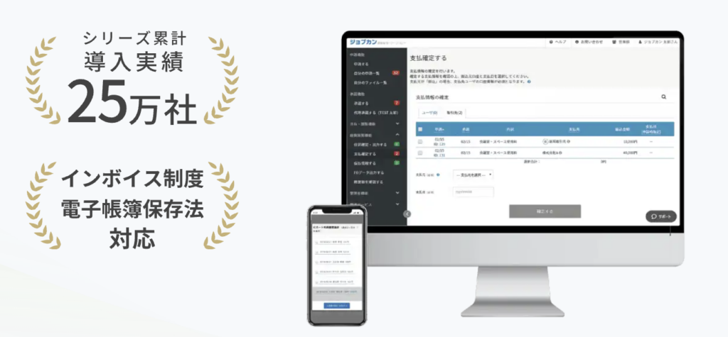 ジョブカン経費精算は、ジョブカンシリーズの1つとして展開されている経費精算アプリ。シリーズ累計の導入実績は25万社以上で、有料利用ユーザー数は300万を突破しています。