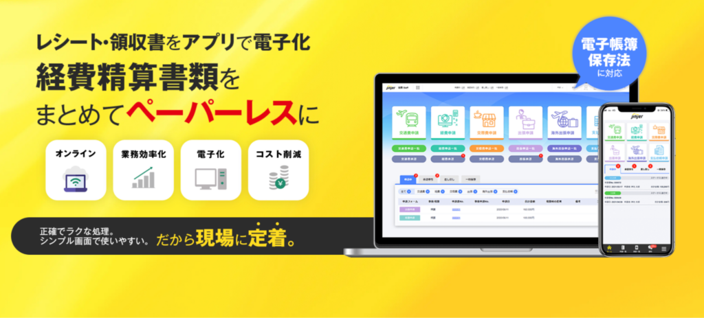 ジンジャー経費は、誰でも使いやすいシンプルな設計と丁寧な導入サポートが魅力の経費精算アプリ。