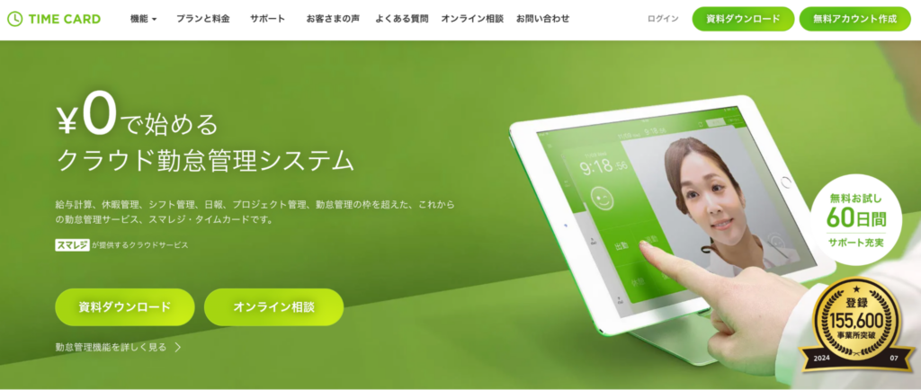 | スマレジ・タイムカード | 0円 | 2,420円/ 月〜※30名以下は無料 | 60日間 |