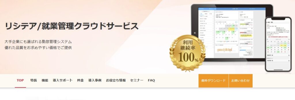 リシテア/就業管理クラウドサービスは、株式会社日立ソリューションズが提供するクラウド型の勤怠管理システムです。使いやすいUI(ユーザーインターフェース)を備え、従業員が迷わずに勤怠実績を入力できます。多様な打刻方法に対応しており、スマートフォン、PCからのWeb打刻が可能です。勤務場所の登録や、GPS打刻により在宅勤務の状況も把握できます。