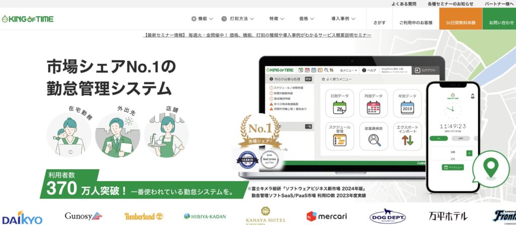 ▼参考:【導入事例あり】KING OF TIME(キングオブタイム)の勤怠管理システムを解説!特徴・料金・口コミ評判