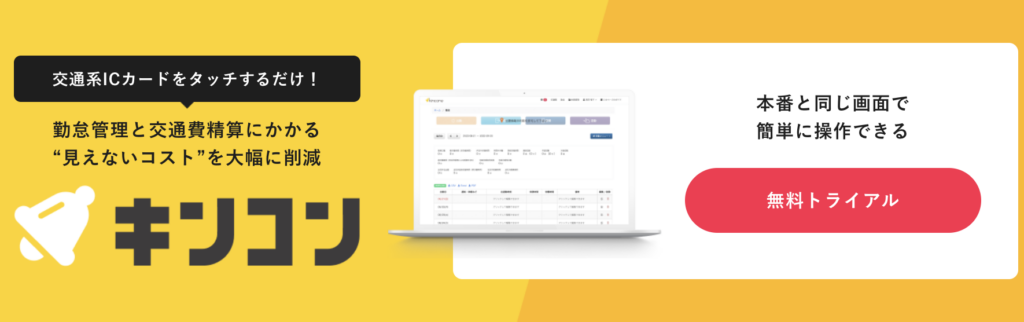 キンコンはICカードを使った打刻に対応しており、モバイルSuicaやモバイルPASMO、モバイルICOCAの読み取りで交通費精算も自動化できます。