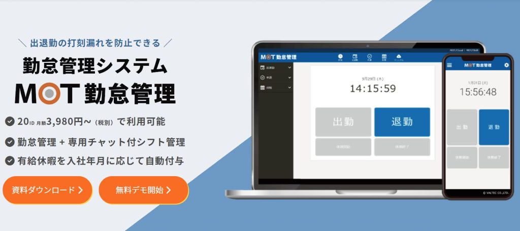 | MOT勤怠管理 | 専用端末「EFR-T5」を利用可 | 4,378円(20ユーザーまで) |