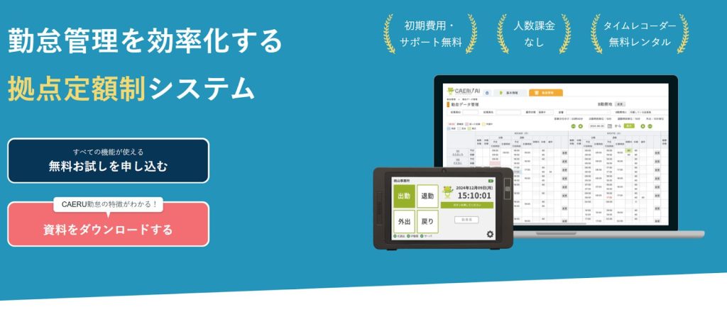 | CAERU勤怠 介護 | 手当対象の業務を自動でカウント | 1拠点あたり8,250円+従業員1人あたり165円(税込) |