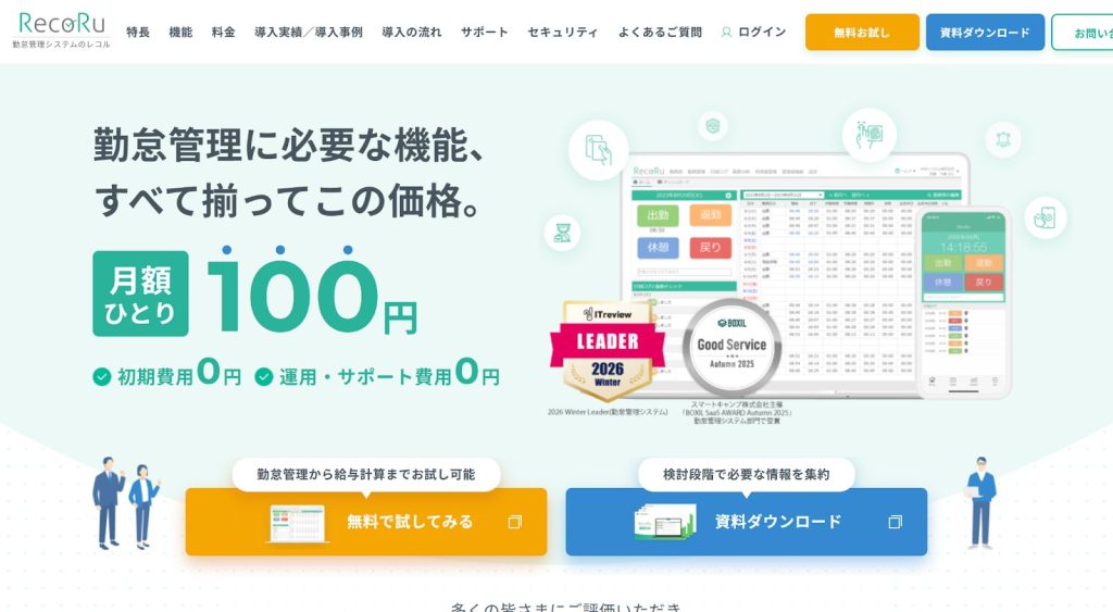 出典:勤怠管理システムの「レコル」