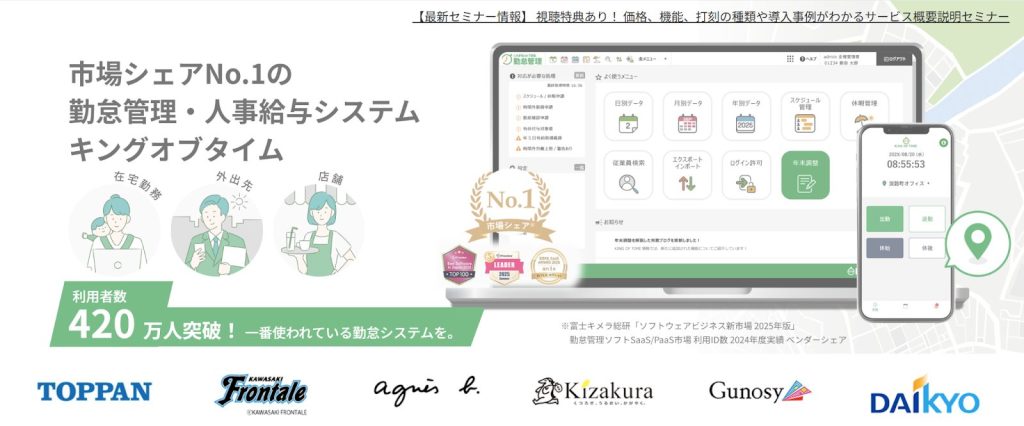 操作がシンプルでサポート体制も整っているため、初めて勤怠管理システムを導入する企業にも適しています。