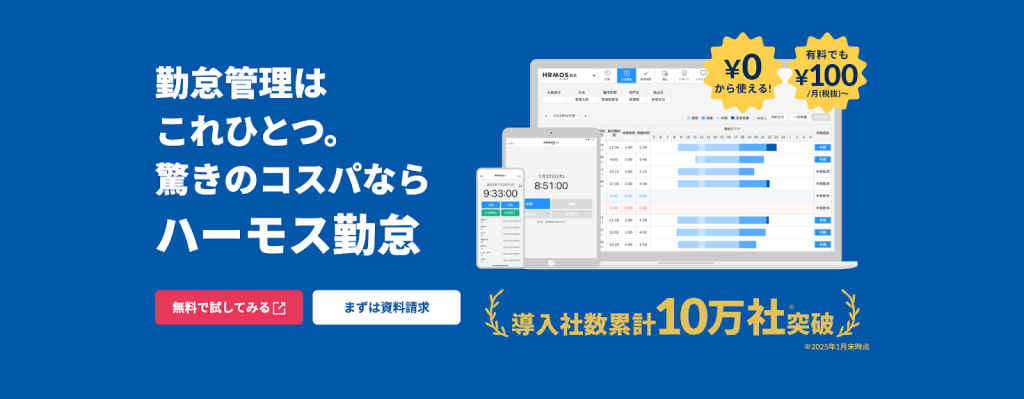 出典:【HRMOS(ハーモス)勤怠】無料で使える勤怠管理システム