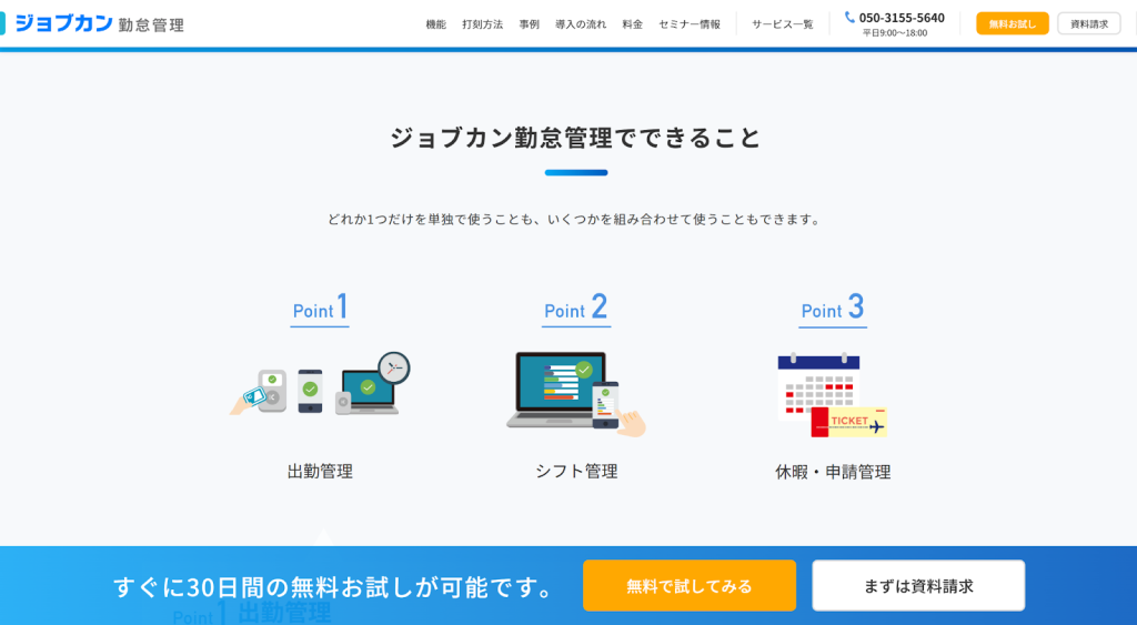 出典:無料で試せる勤怠管理システム – マネーフォワード クラウド勤怠