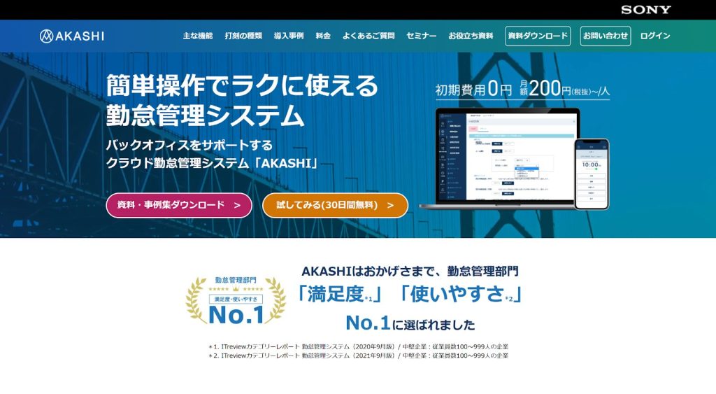 出典:クラウド勤怠管理システム「AKASHI」 | ソニービズネットワークス株式会社