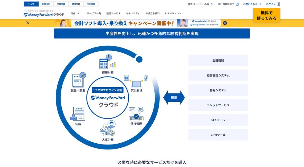マネーフォワード クラウドは、株式会社マネーフォワードが運営するバックオフィスツールです。シリーズ展開されており、勤怠管理を選択して利用します。
