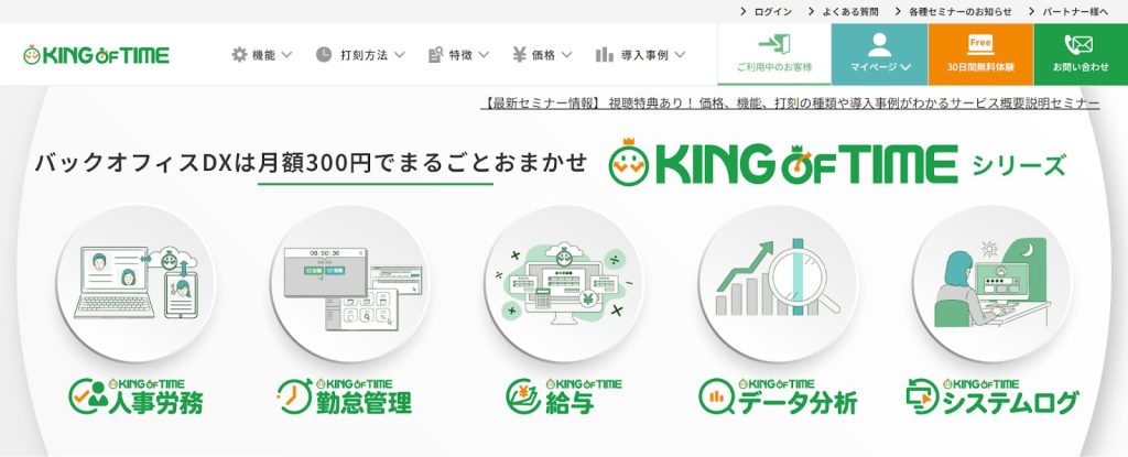 | KING OF TIME | PCログイン・ログオフ打刻で客観的な労働時間を把握できる | ・教職員の利便性とセキュリティを両立させたい大学 ・労働時間を客観的に把握したい大学 |