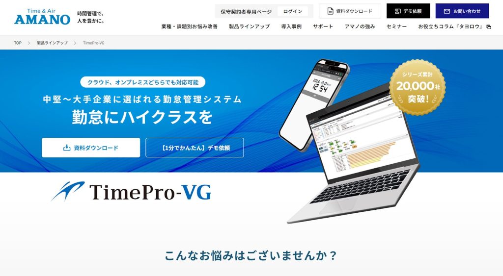 TimePro-VGは、アマノ株式会社が提供する勤怠管理システムシリーズの一つです。異常検知や勤務アラートの提案などを中心に、AIを用いた仕組みの開発が行われています。