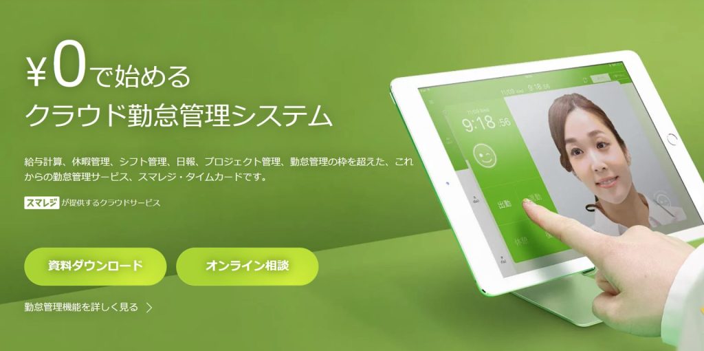 出典:スマレジ・タイムカード – 無料で始めるクラウド勤怠管理システム