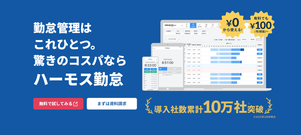 出典:【HRMOS(ハーモス)勤怠】無料で使える勤怠管理システム