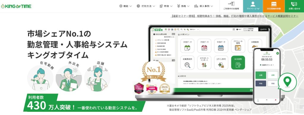 出典:勤怠管理・人事給与システム市場シェアNo.1 KING OF TIME(キングオブタイム)
