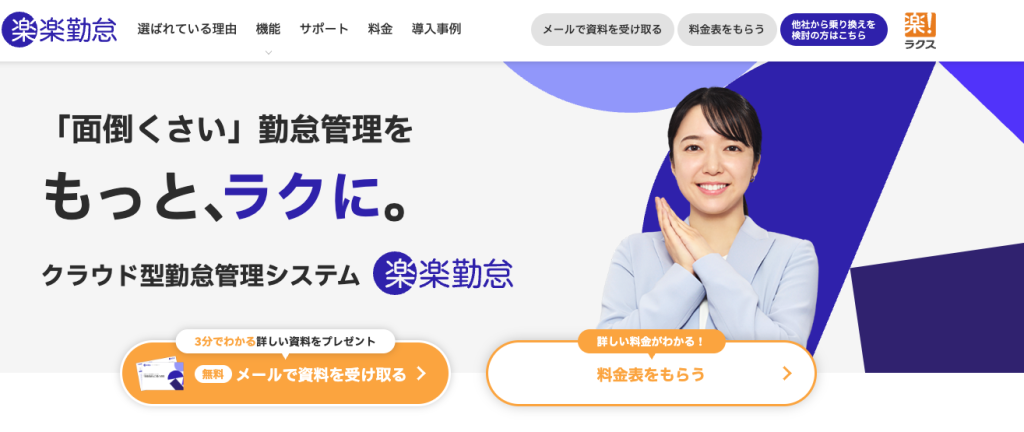 楽楽勤怠は、株式会社ラクスが提供する勤怠管理システムです。電話やメール、オンライン会議ツールなど、多様なサポート手段が用意されており、導入時や運用時の不明点を迅速に解決できます。