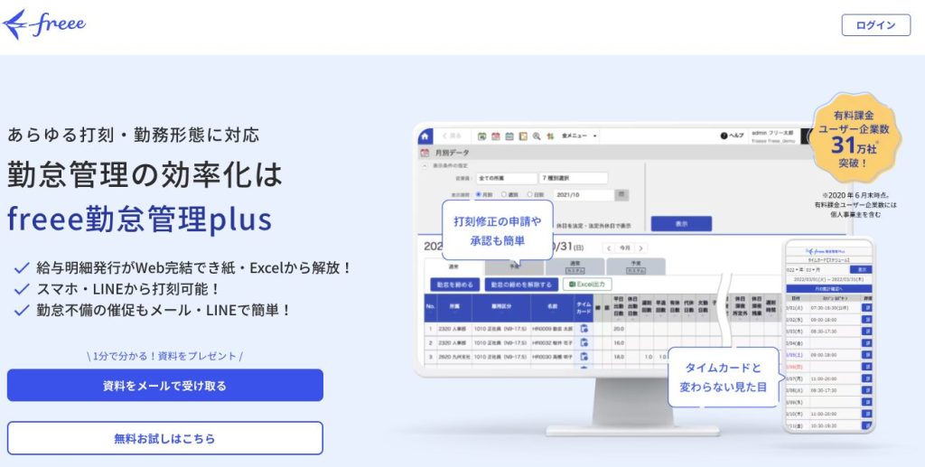 freee勤怠管理Plusは、フリー株式会社が提供する勤怠管理システムです。初期費用はかからず、1ユーザーあたり月額330円(税込)の従量課金制で利用できます。