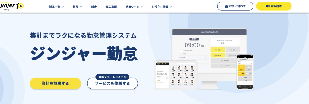 ジンジャー勤怠は、jinjer株式会社が提供する勤怠管理システムです。パソコンやスマホ、タブレット、ICカードなど、さまざまな方法で打刻できます。