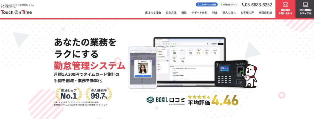 | Touch On Time(タッチオンタイム) | 多くの人事管理システムや給与管理システムと連携できる | 1ユーザー月額330円(税込) |