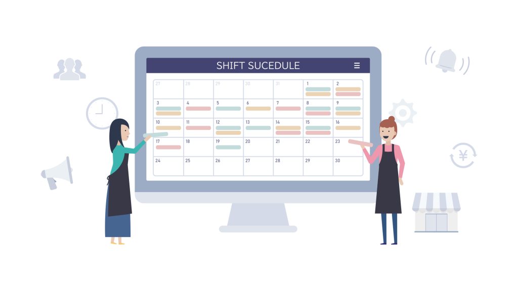 飲食店では、スタッフのシフト希望を考慮しながら勤務体制を調整する必要があります。店長や店舗責任者は、店舗の繁忙時間帯や必要な人員数を踏まえてシフトを作成し、労働時間の集計や勤務状況を管理することが求められます。