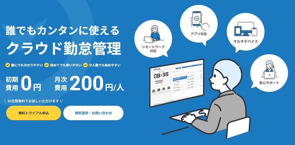 CLOUZAは、シンプルな操作性と導入しやすさを重視したクラウド型勤怠管理システムです。スマホ、ICカード、QRコードなど多様な打刻方法に対応しています。