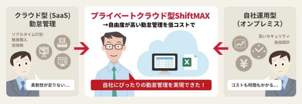 出典:シフト・勤怠管理システムはハイブリッド型のShiftMAX|KYODOU株式会社