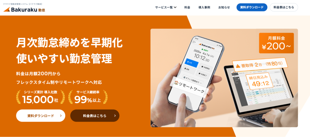 出典:クラウド型勤怠管理システム【バクラク勤怠】|株式会社LayerX