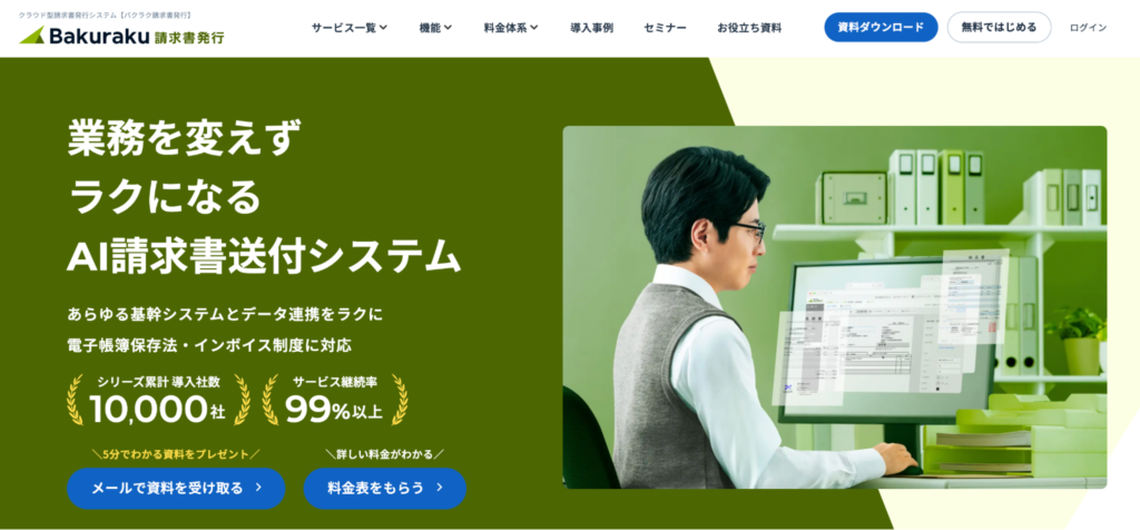 バクラク請求書発行は、請求書、納品書、見積書などあらゆる帳票の作成・送付・保管を電子化し、業務効率を大幅に向上させるAI請求書送付サービスです